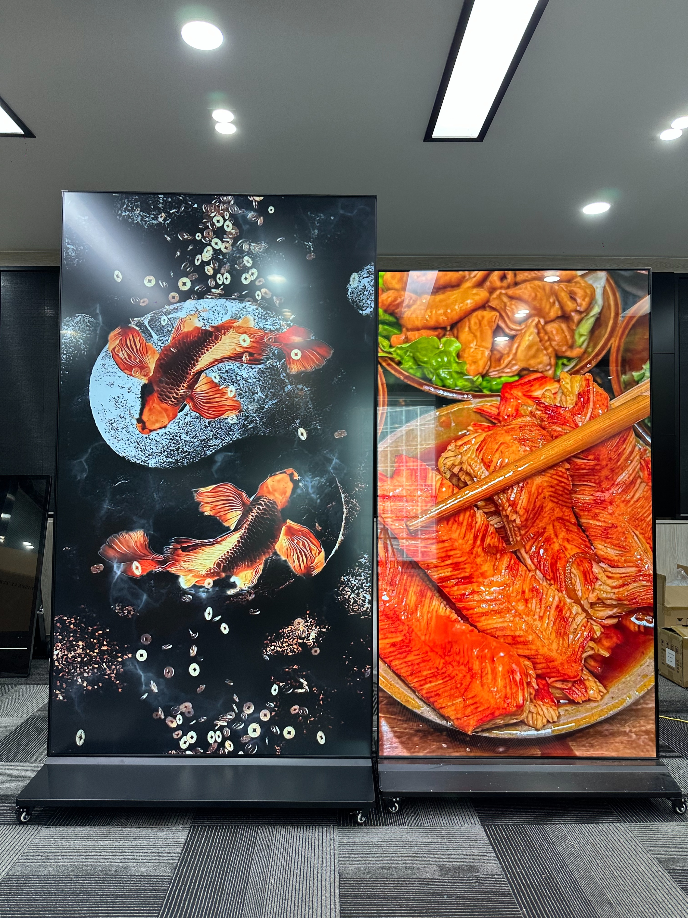 从技术本质看,LCD海报屏依托液晶分子排列的物理特性实现图像显示。背光模组与液晶层的协同工作,使其在色彩饱和度、对比度控制及视角广度上具备显著优势。相较于传统静态海报,其动态呈现能力突破了二维平面的限制——通过分屏、轮播、渐变等视觉语言,可实现多维度信息叠加与叙事节奏的精准把控。这种技术特性在商业空间中尤为突出:当消费者步入商场中庭,大尺寸LCD屏通过流动的视觉符号引导视线,既完成商品信息的有效传递,又营造出沉浸式的场景氛围。