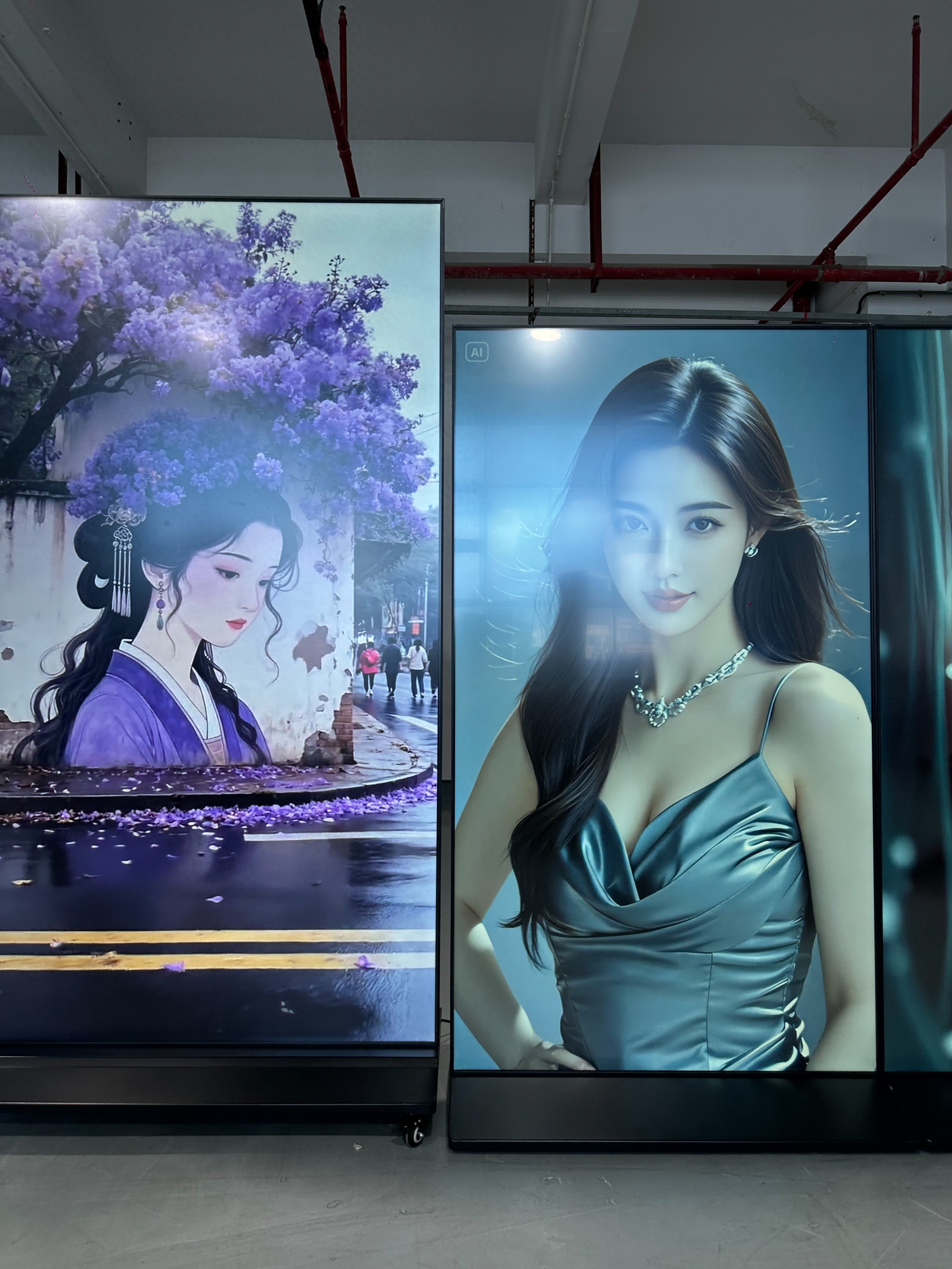 在商场中,它可以是品牌专柜的“数字门面”。通过分屏功能,上半部分循环播放新品视频,下半部分实时更新促销信息,甚至嵌入互动二维码引导线上转化。而在展会现场,其轻量化机身(通常采用铝合金框架+钢化玻璃材质)与快装结构,让展商能在1小时内完成从运输到部署的全流程。更关键的是,广告机支持横竖屏自由切换——当展示服装产品时,竖屏模式能完整呈现模特全身造型;切换至汽车展区,横屏又能营造出影院级的沉浸观感。